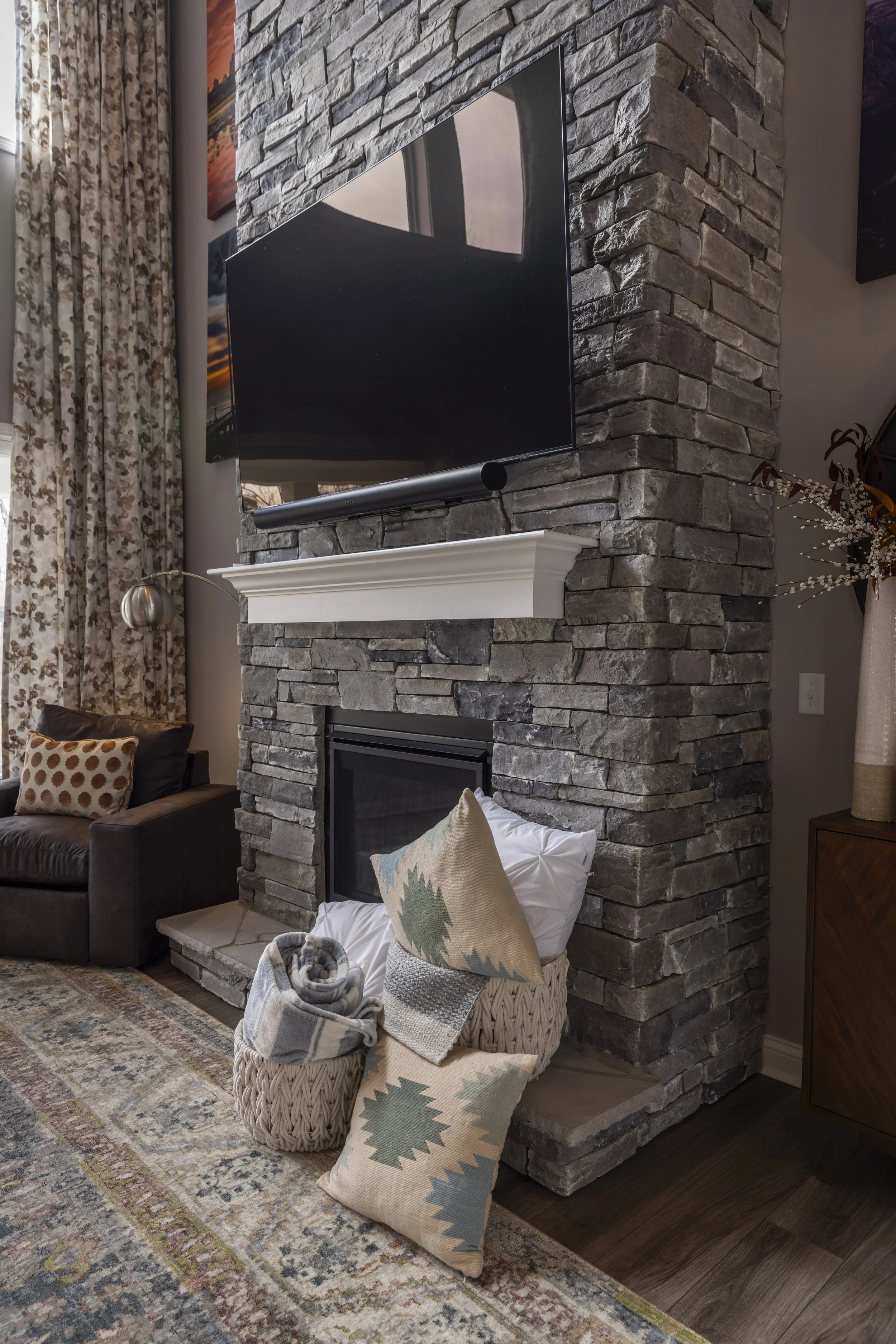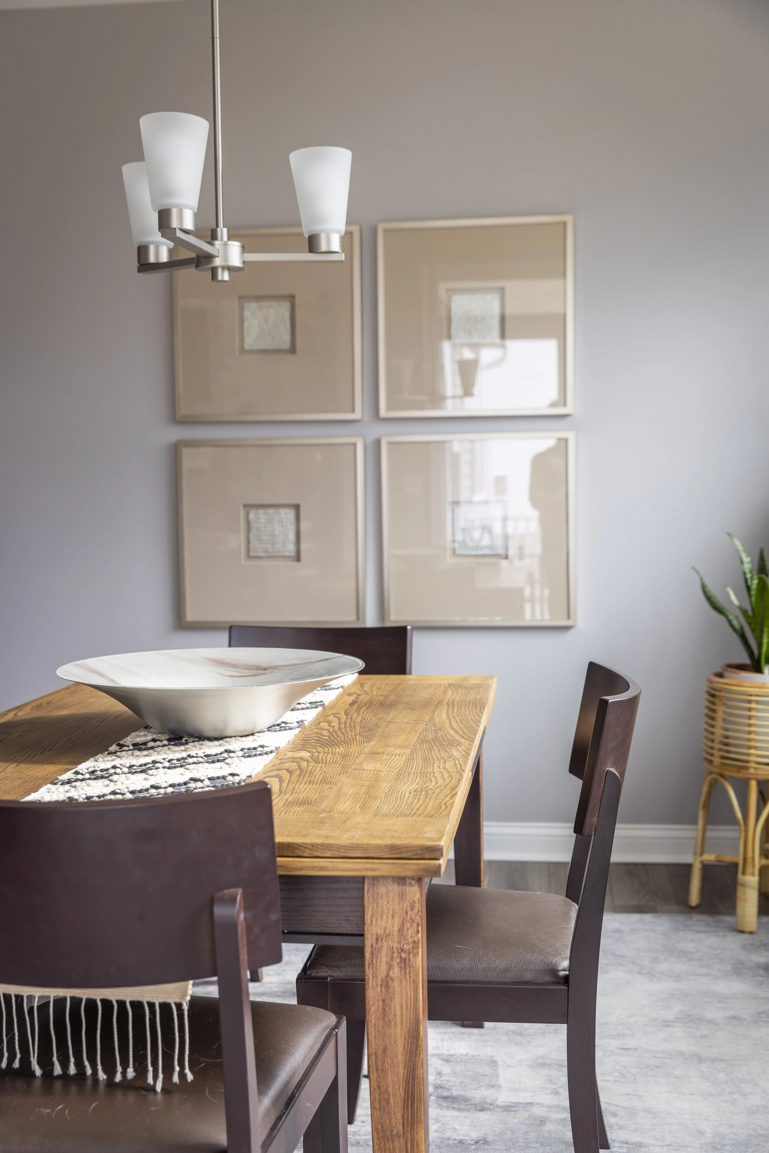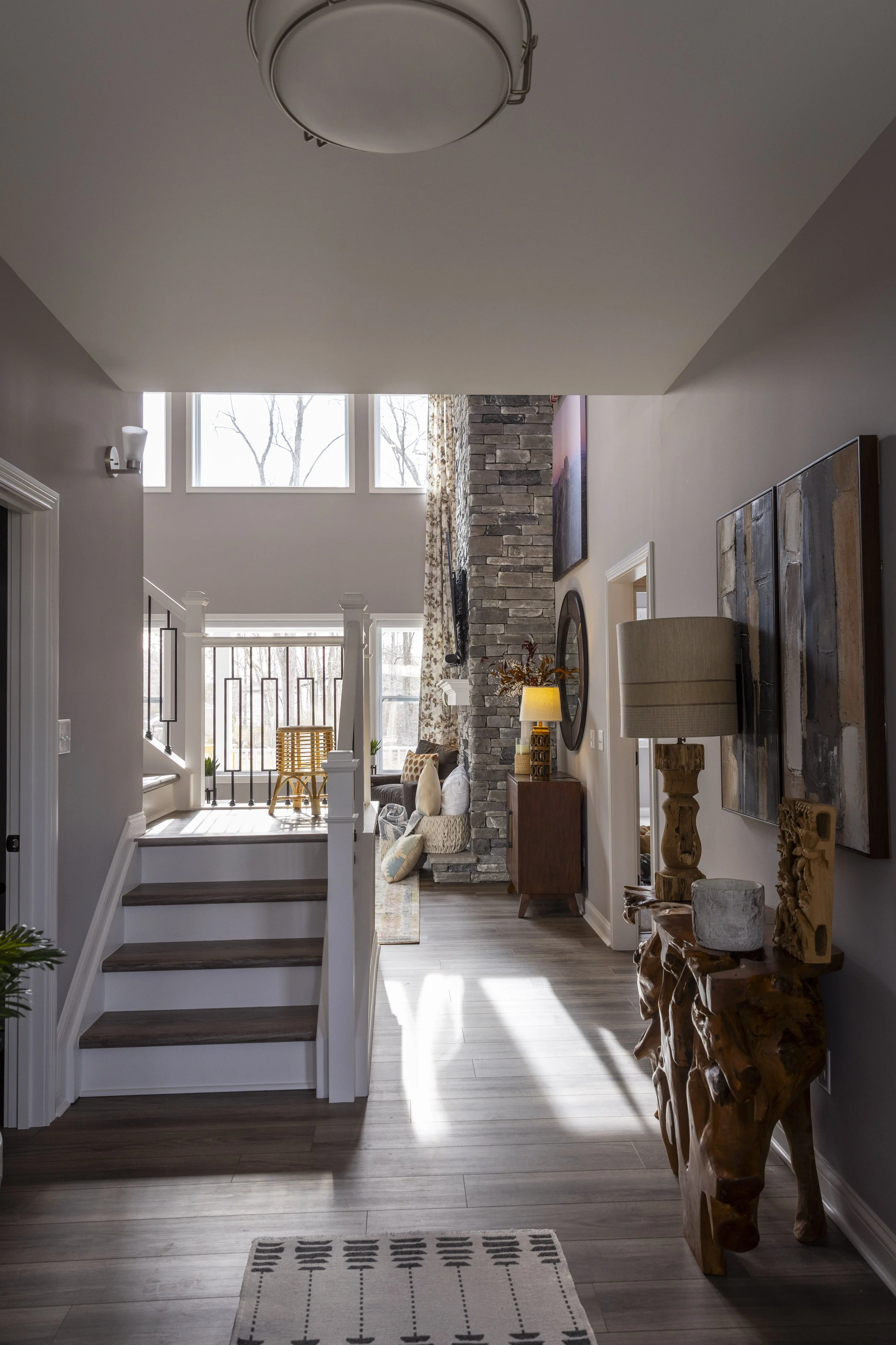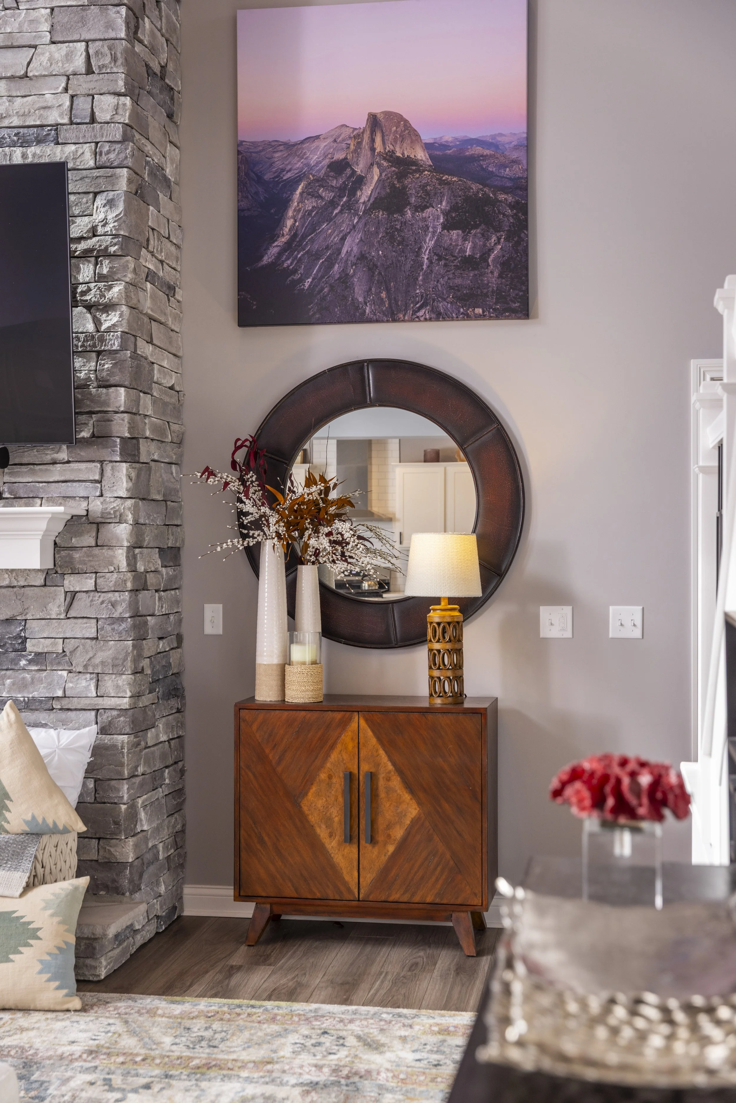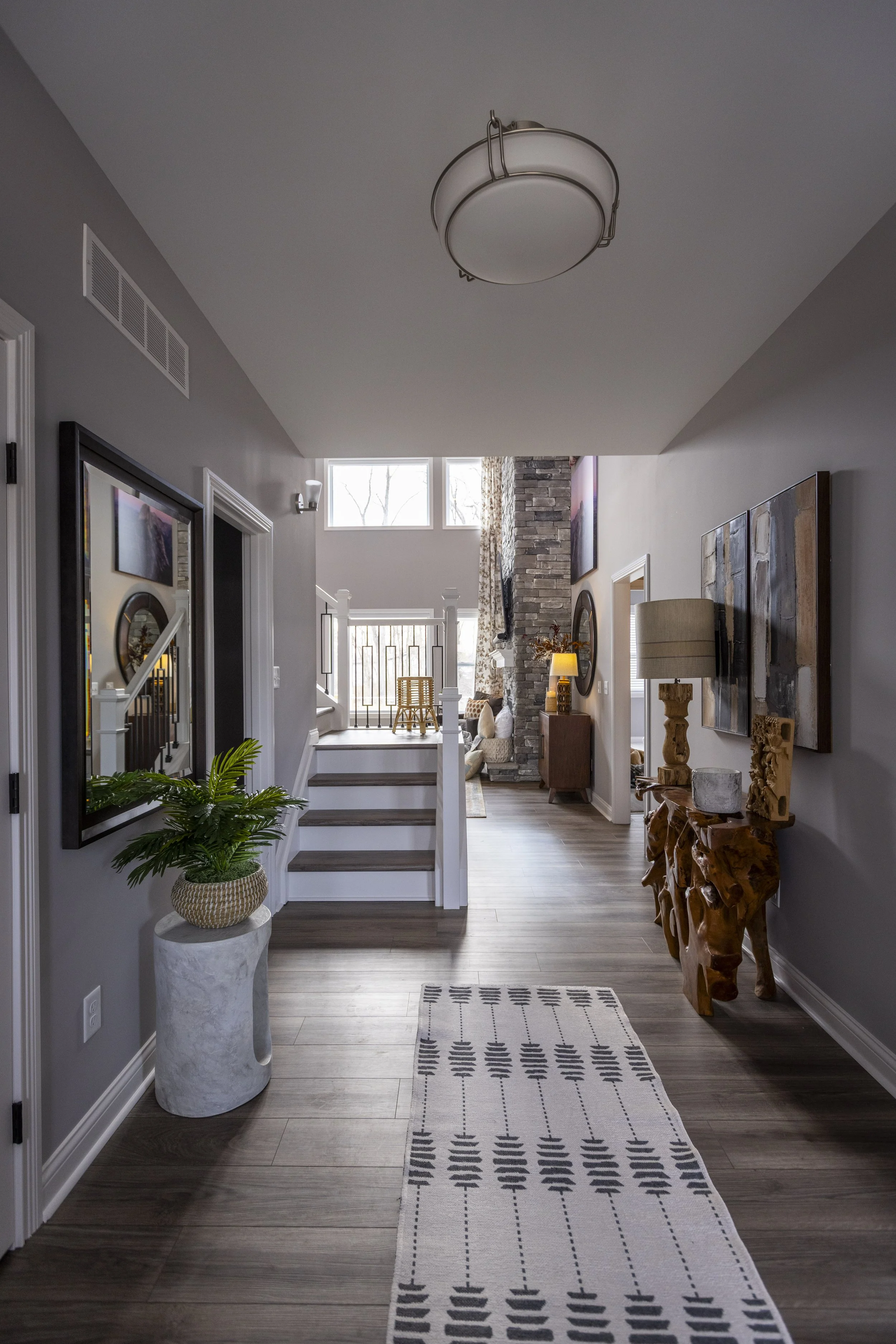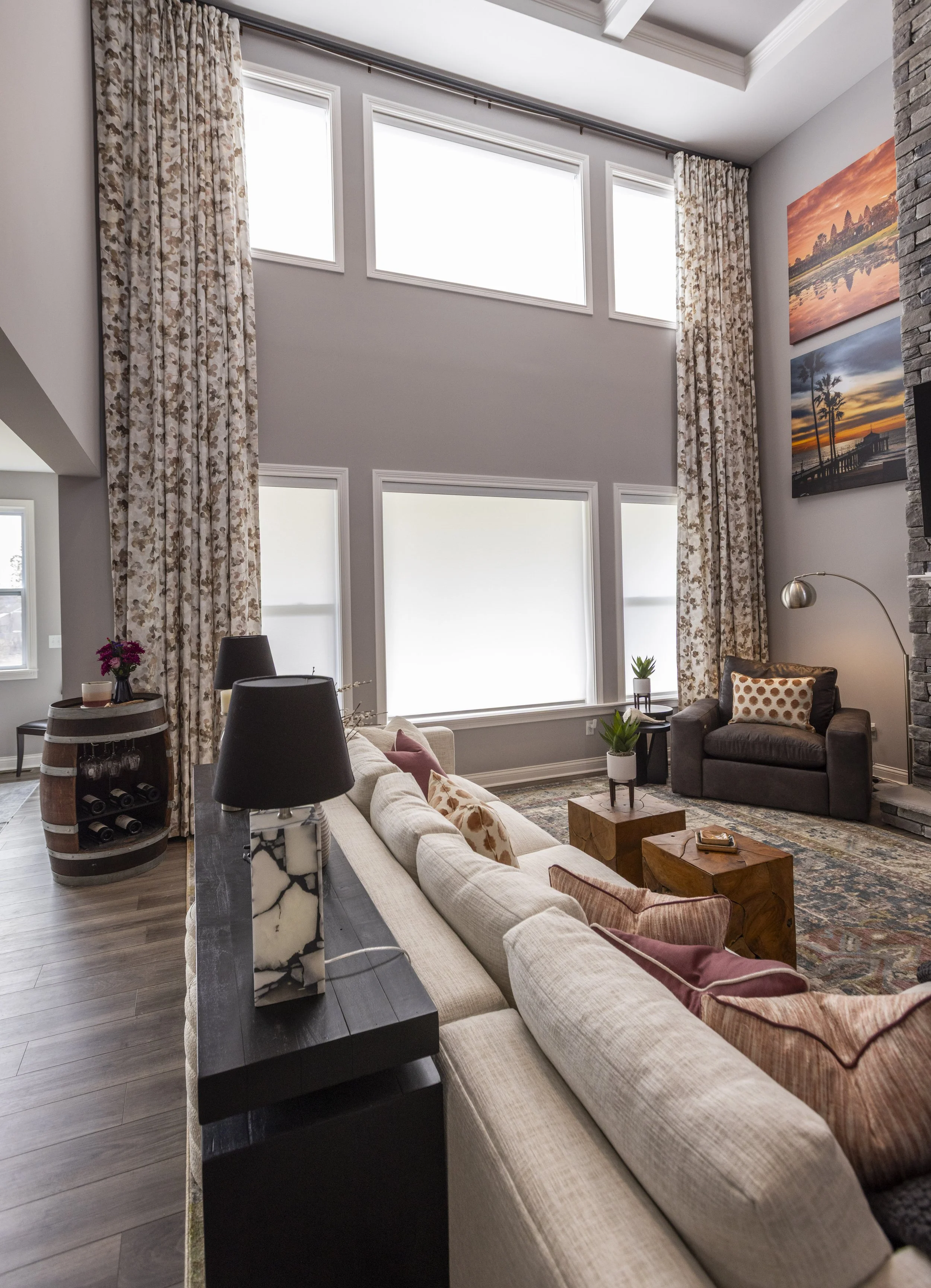 This client just moved to Cincinnati, Ohio from Cambodia for her government job. She wanted color and to be able to mix pieces she has collected over the years at various places she has lived. She loved the color palette that included plum, whites, greys, and browns. The end result was a space she can relax and enjoy after a long day at the office!