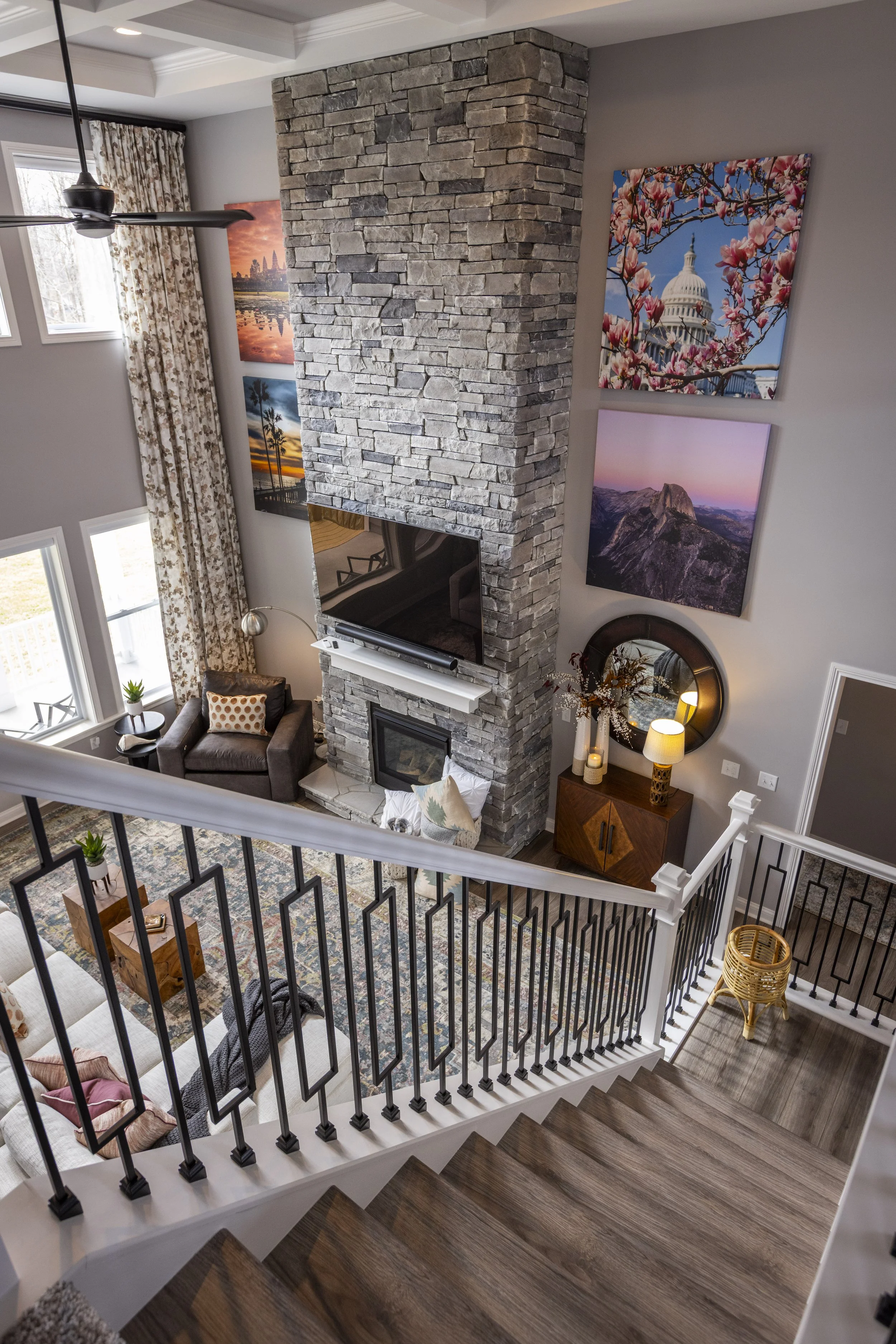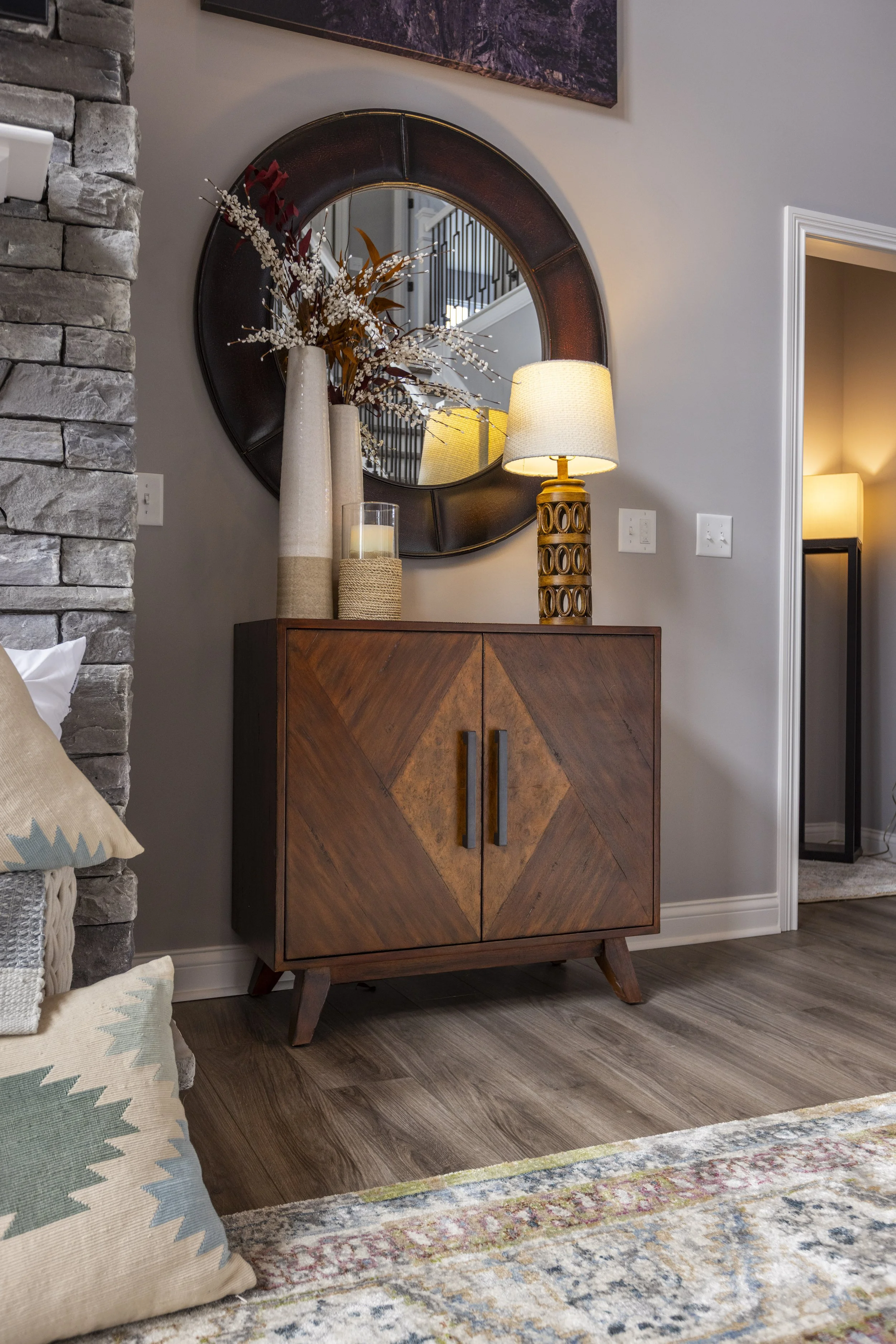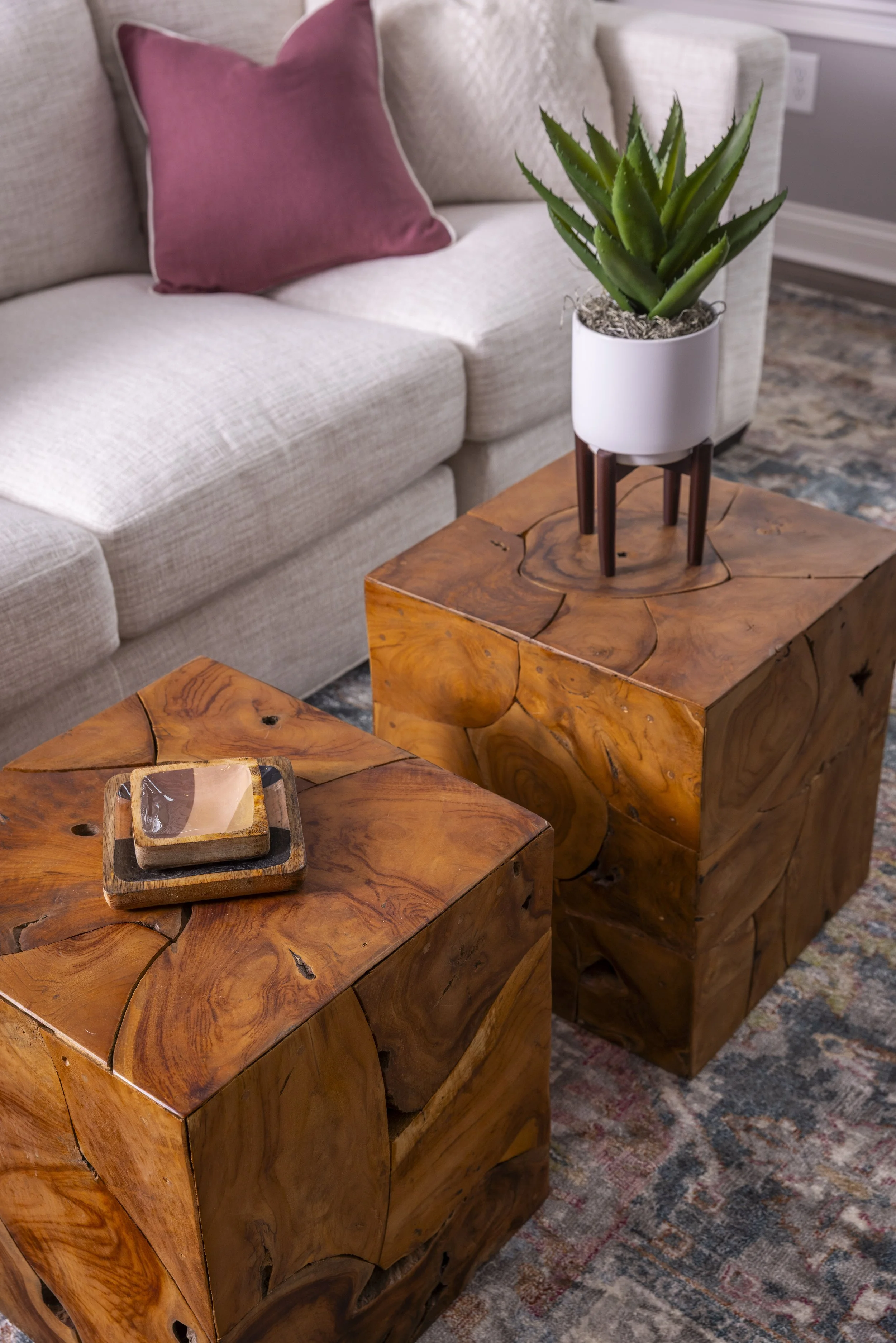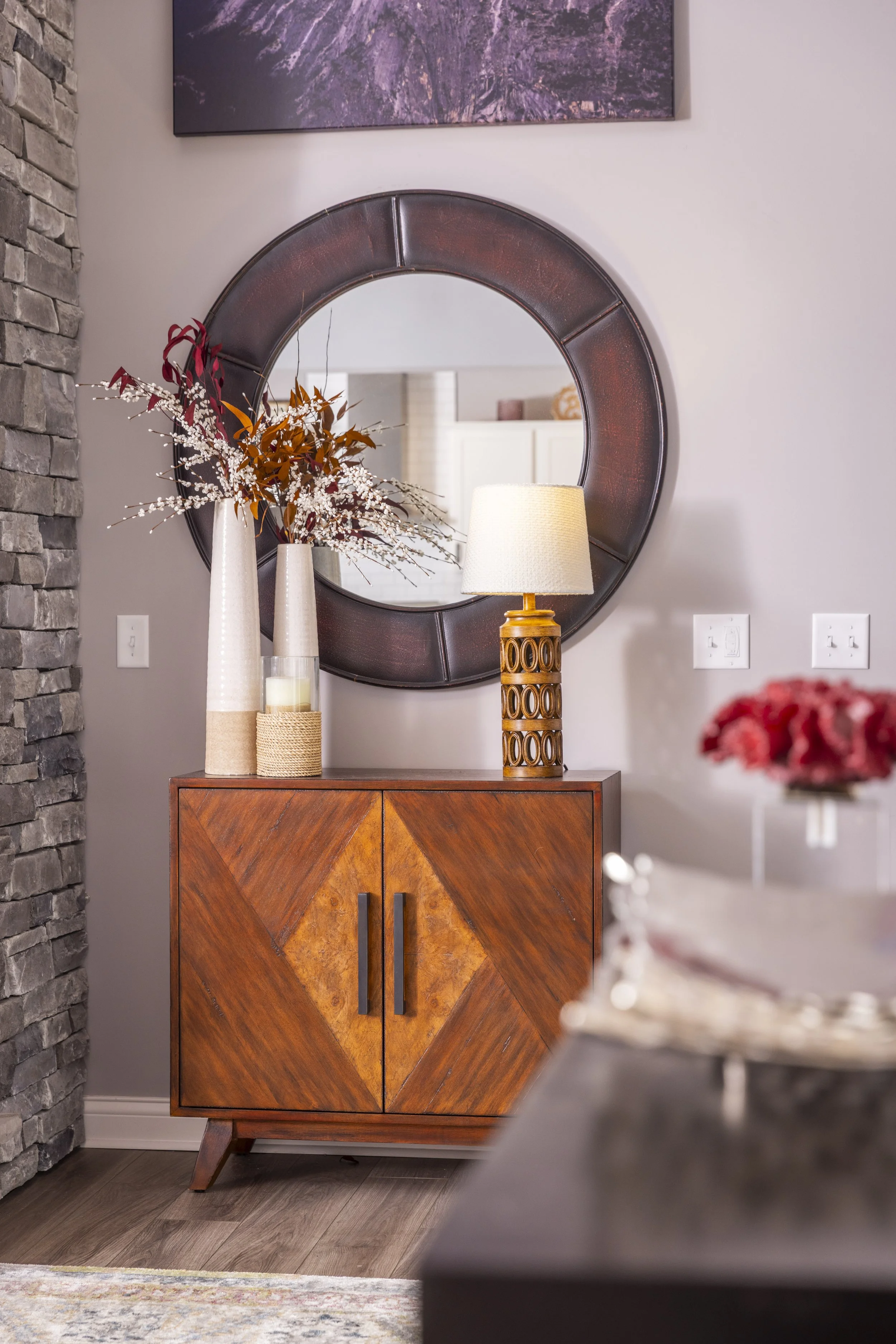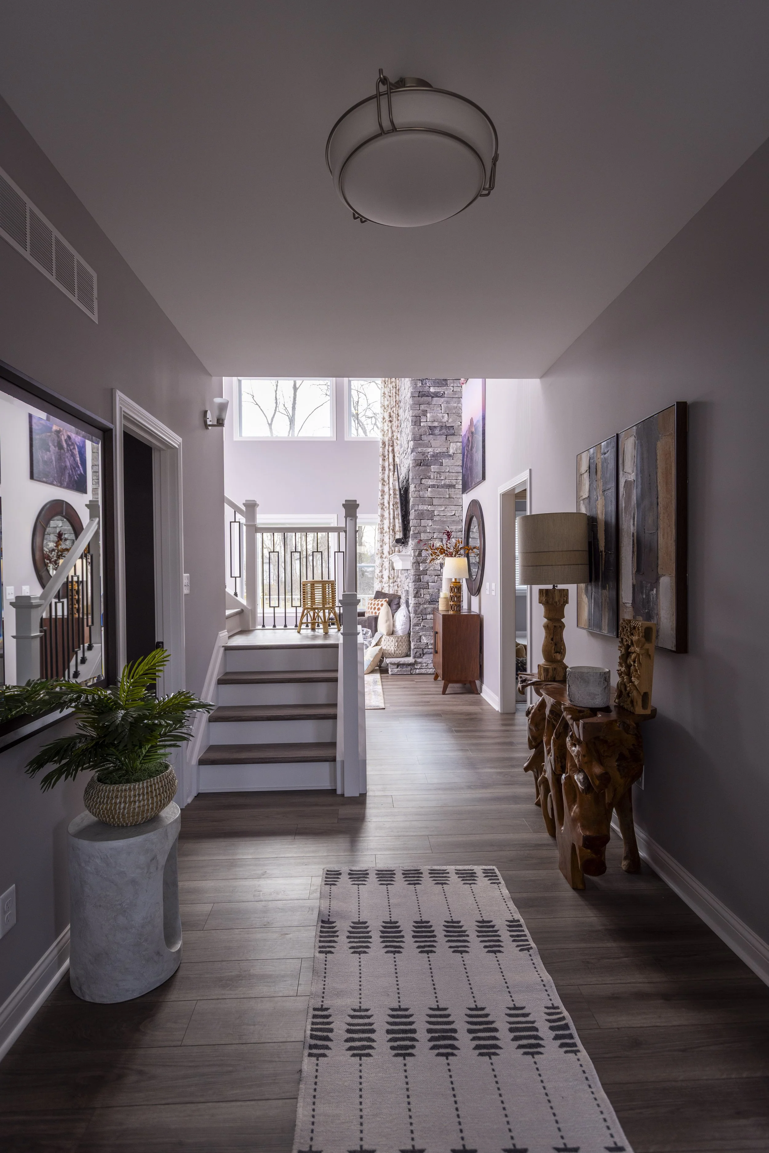 This client just moved to Cincinnati, Ohio from Cambodia for her government job. She wanted color and to be able to mix pieces she has collected over the years at various places she has lived. She loved the color palette that included plum, whites, greys, and browns. The end result was a space she can relax and enjoy after a long day at the office!