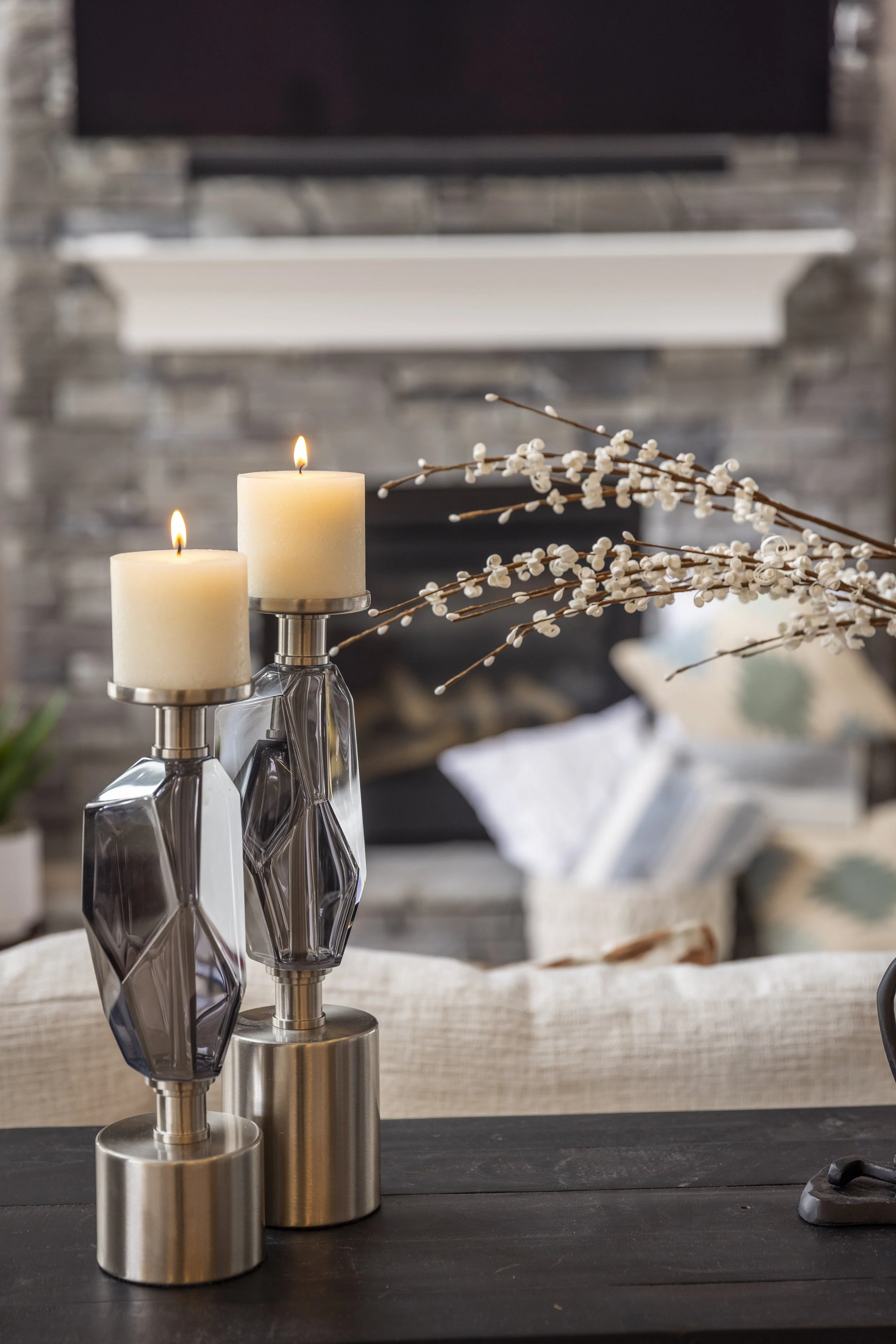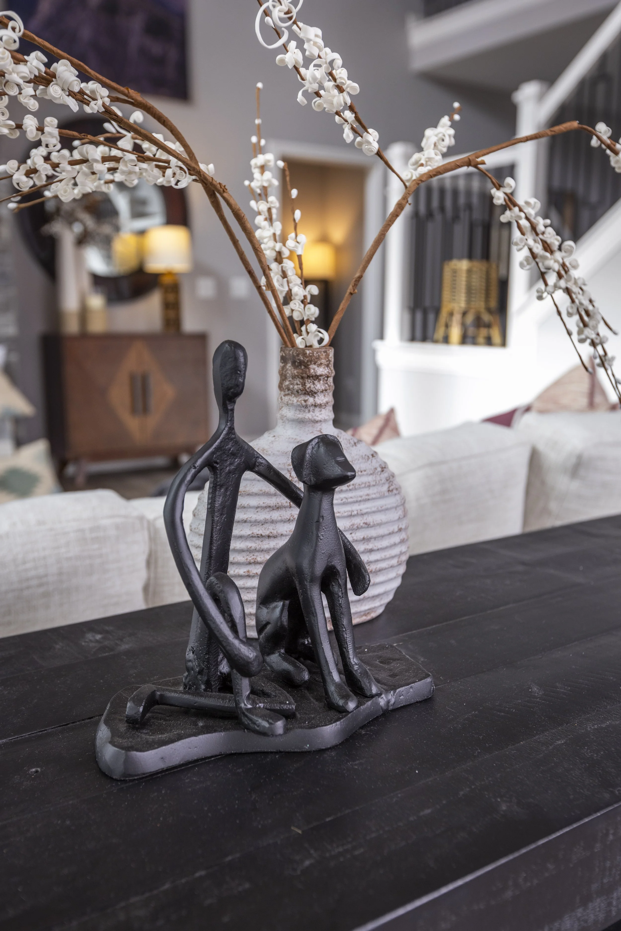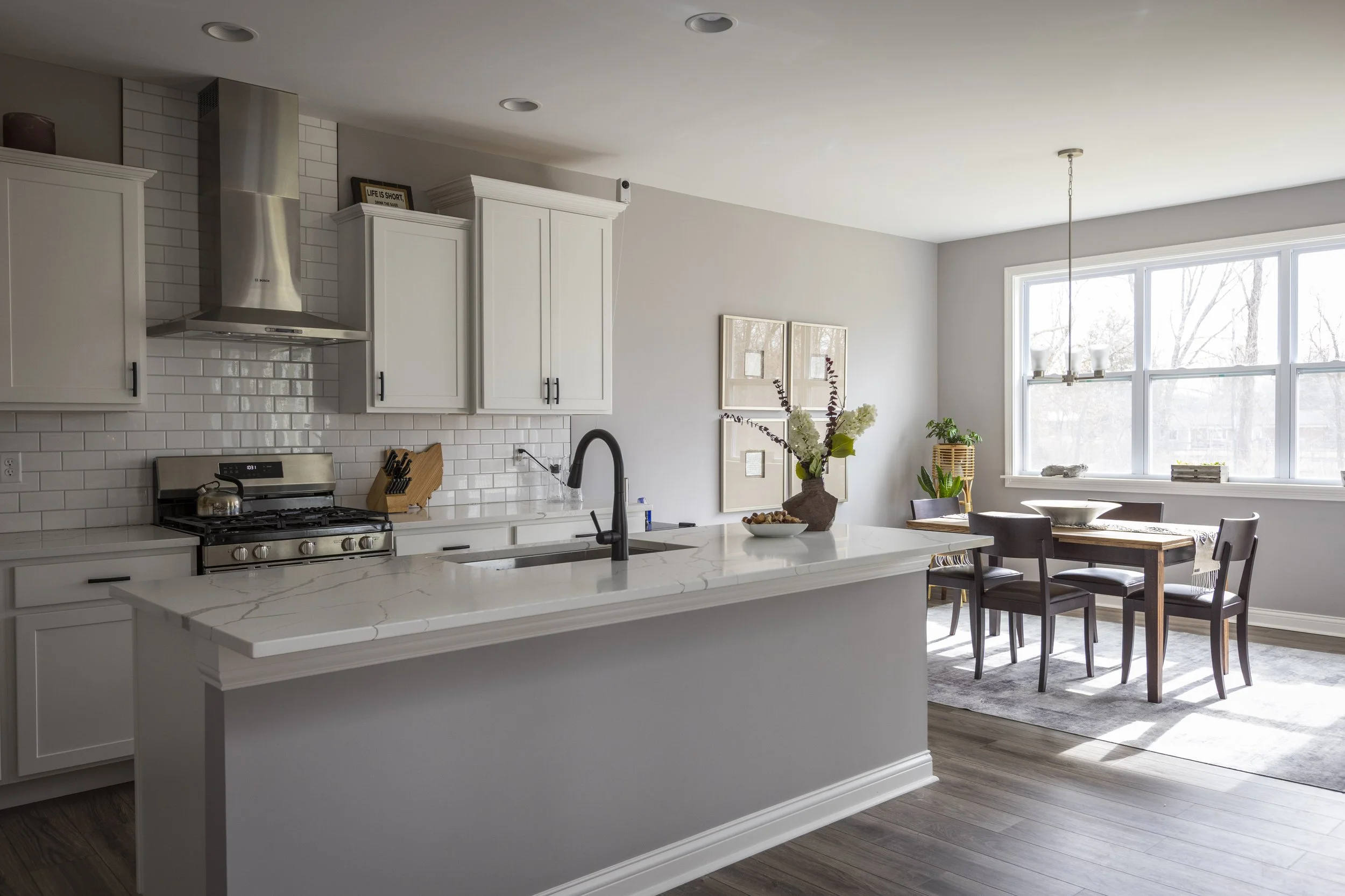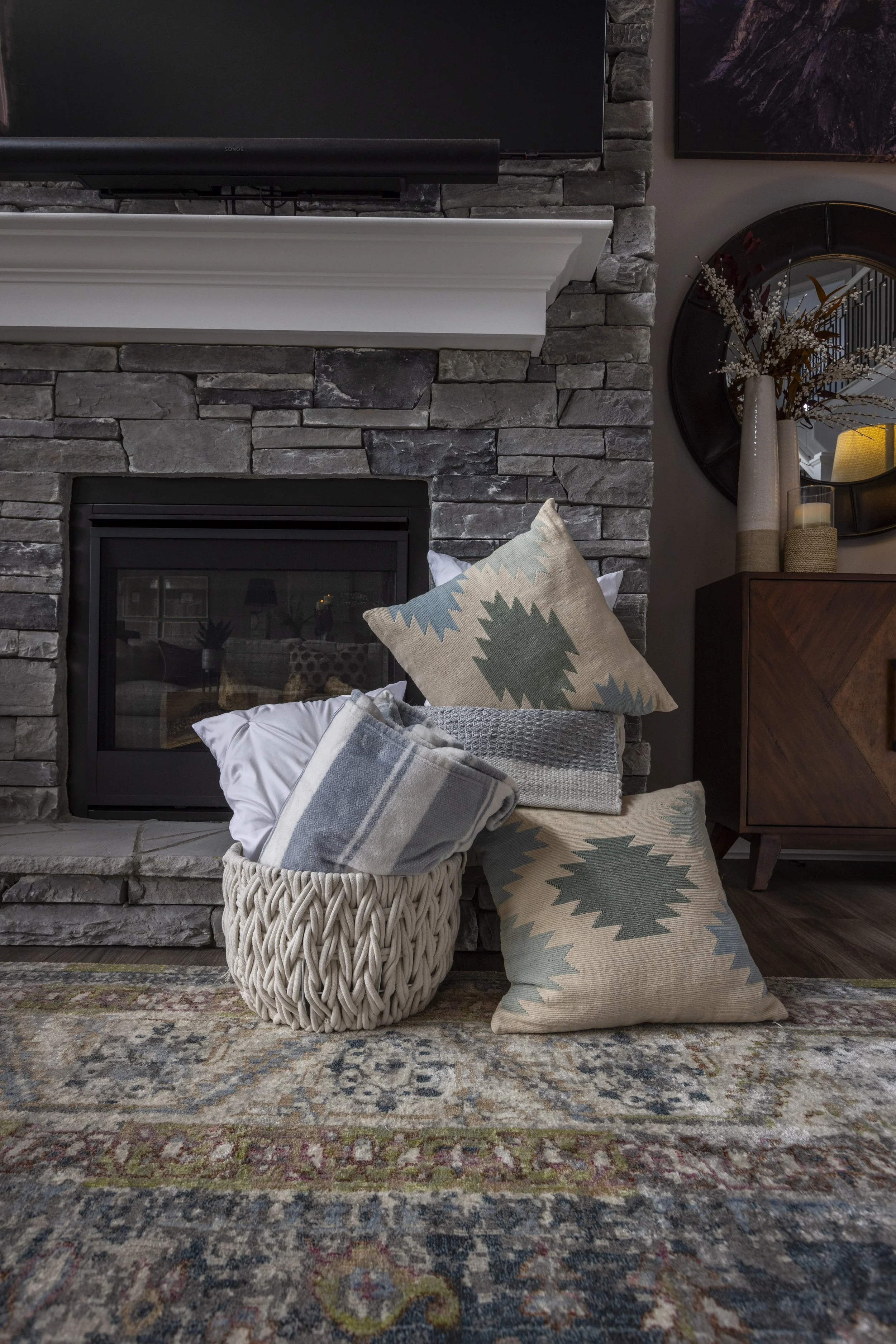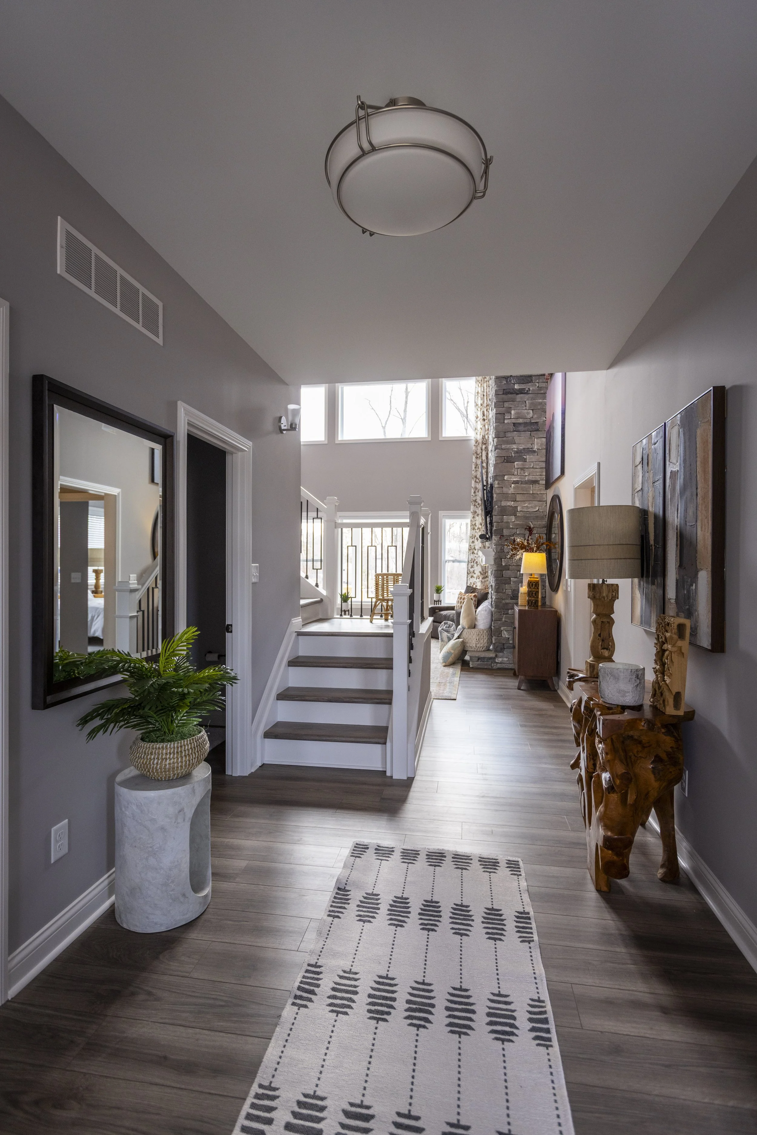 This client just moved to Cincinnati, Ohio from Cambodia for her government job. She wanted color and to be able to mix pieces she has collected over the years at various places she has lived. She loved the color palette that included plum, whites, greys, and browns. The end result was a space she can relax and enjoy after a long day at the office!